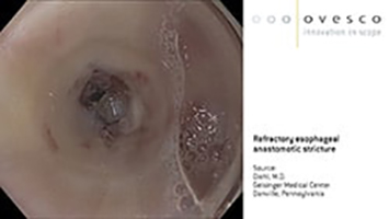 Zeigt die Bougierung einer refraktären anastomotischen Striktur der Speiseröhre