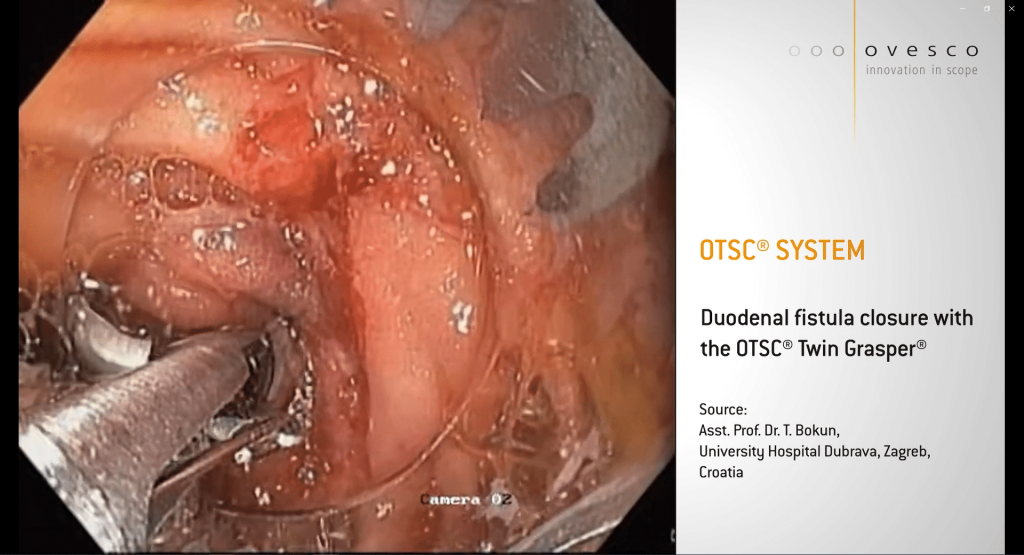 Duodenalfistelverschluss mit dem OTSC® Twin Grasper®